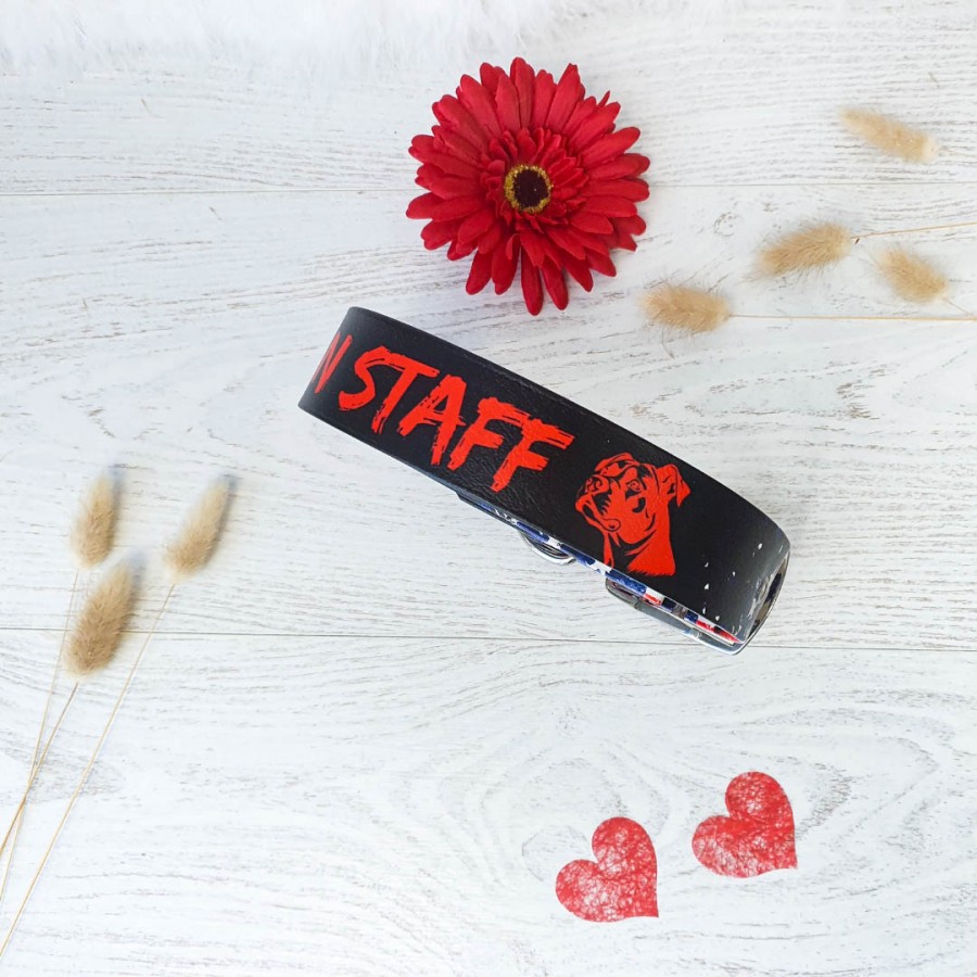 Découvrez notre dernier collier pour chien en biothane imprimé, arborant un magnifique motif d'American Staff, spécialement conçu par Be'tween-us. Ce collier allie à la fois élégance et durabilité, offrant à votre compagnon à quatre pattes un accessoire unique qui met en avant son caractère. Le biothane est un matériau résistant à l'eau et facile à nettoyer, parfait pour les aventures en extérieur tout en restant chic. Offrez à votre chien le style qu'il mérite avec ce collier qui attire tous les regards !