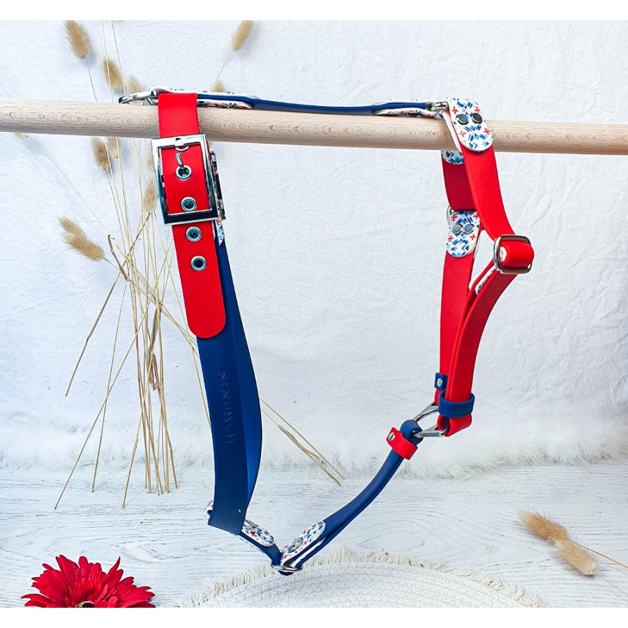 Couleur: Biothane rouge et marine avec biothane imprimé