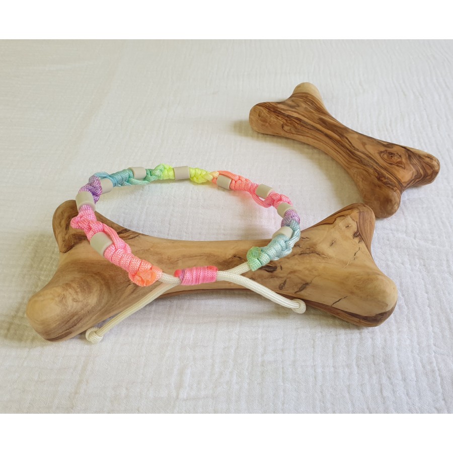 Les colliers que je propose ne sont pas des colliers auxquelles vous pouvez accrocher vos laisses. Ils ne sont pas adaptés pour la traction, c’est pour cela que je n’ai pas mis d’anneau dessus