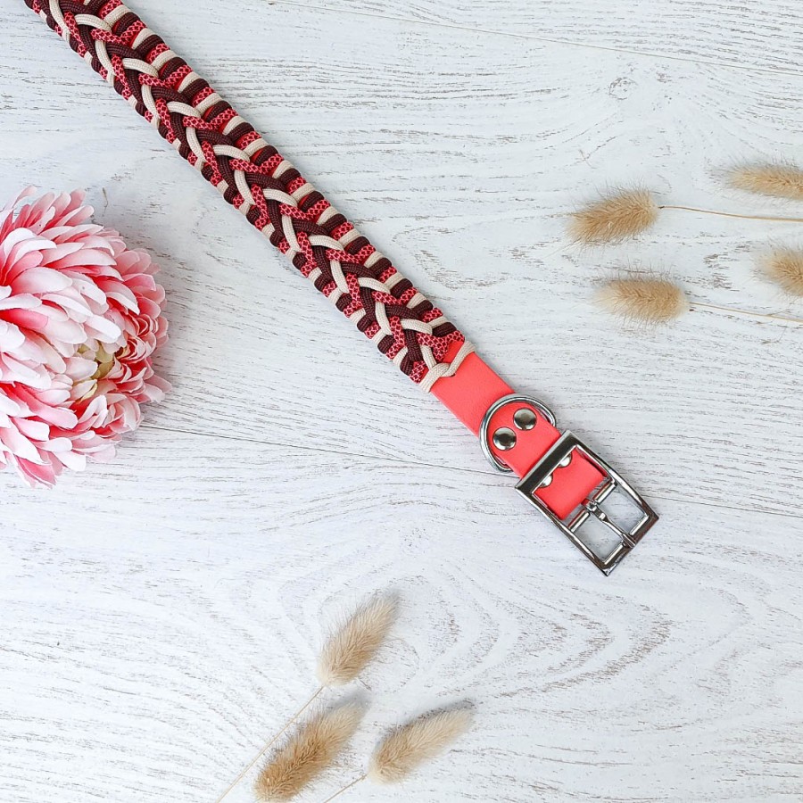 Couleur: biothane corail et paracorde marron, créme, rose