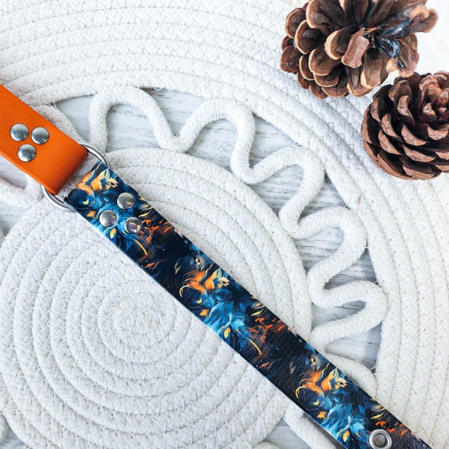 Le collier en biothane imprimé de chez Be'tween-us est un collier résistant. Il est composé d’une sangle en biothane imprimé et biothane uni de 25mm.