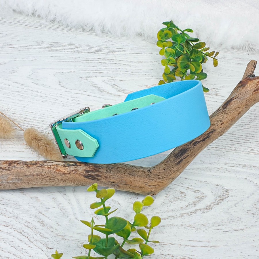 Le modèle RAJAN est un collier composé de deux biothane d’une largeur différente et d’une attache ceinture réglable sur 6 cm .Il est parfaitement adapté aux chiens de moyenne et grande taille qu’il soit à poil court ou long.