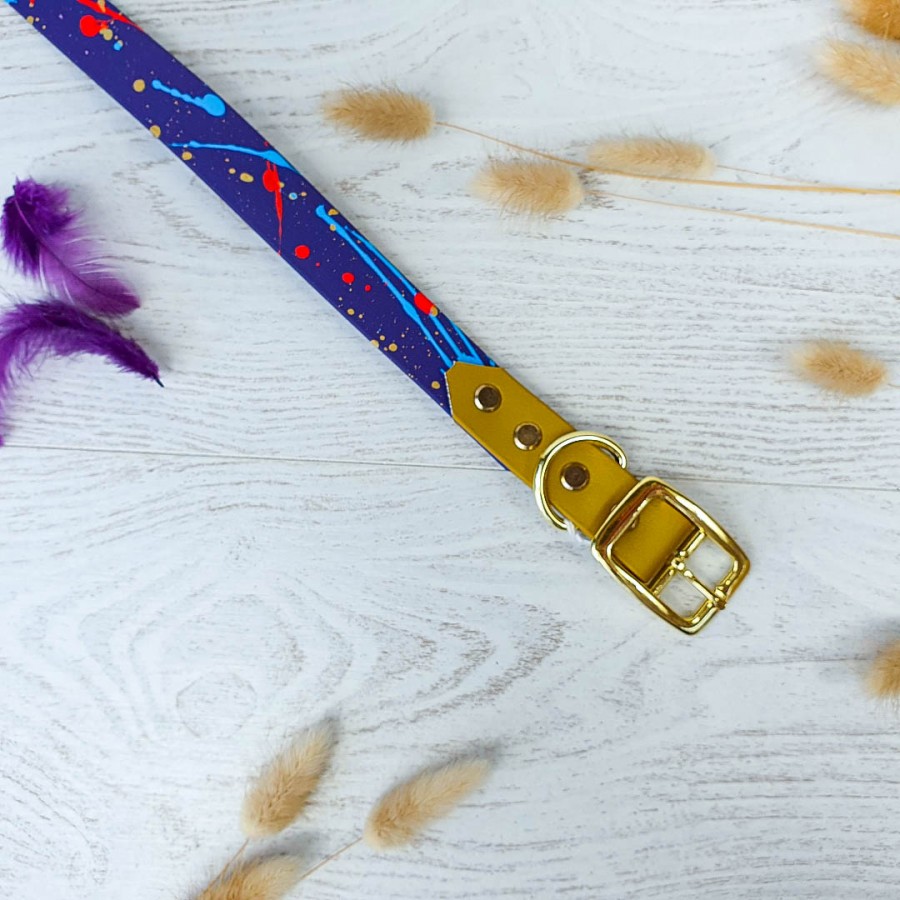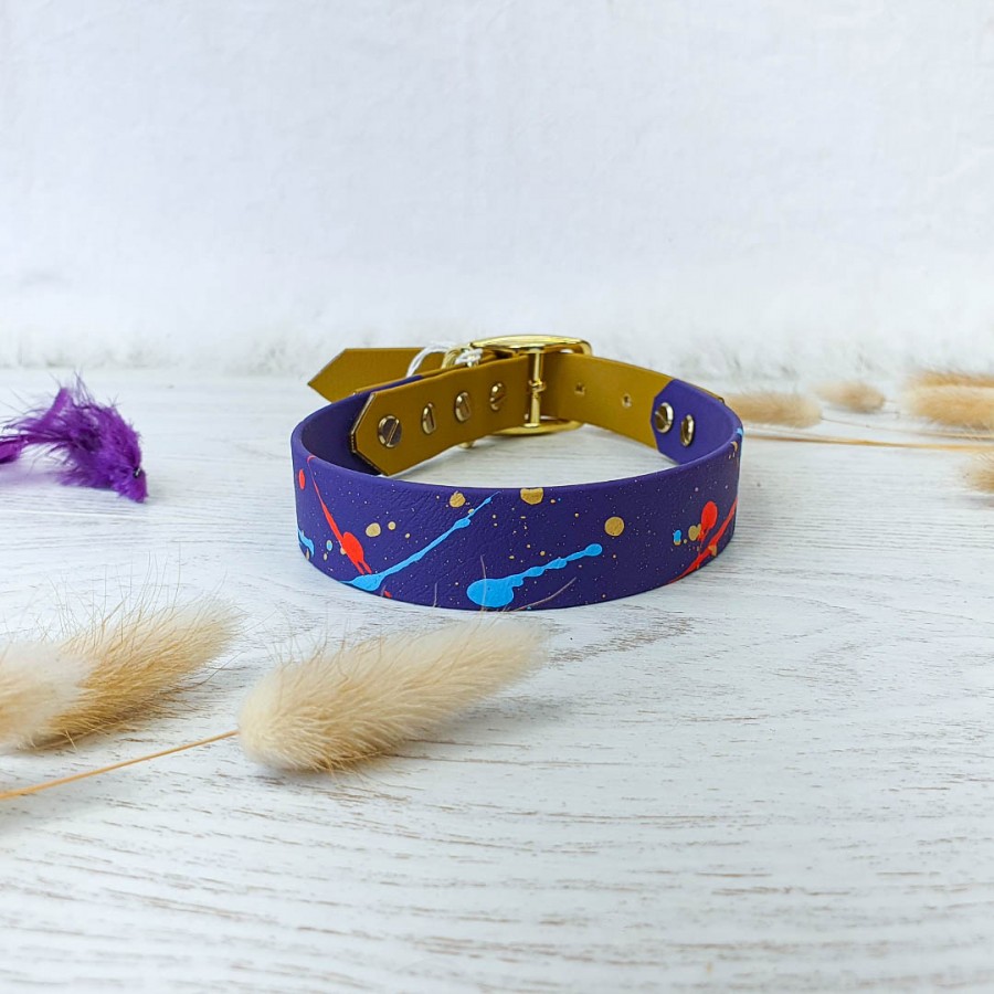 Le modèle ASTON est un collier en biothane auquel des éclaboussures de peinture ont été rajouté pour donner une touche unique à cette création. Il est parfaitement adapté aux chiens de moyenne et grande taille qu’il soit à poil court ou long.