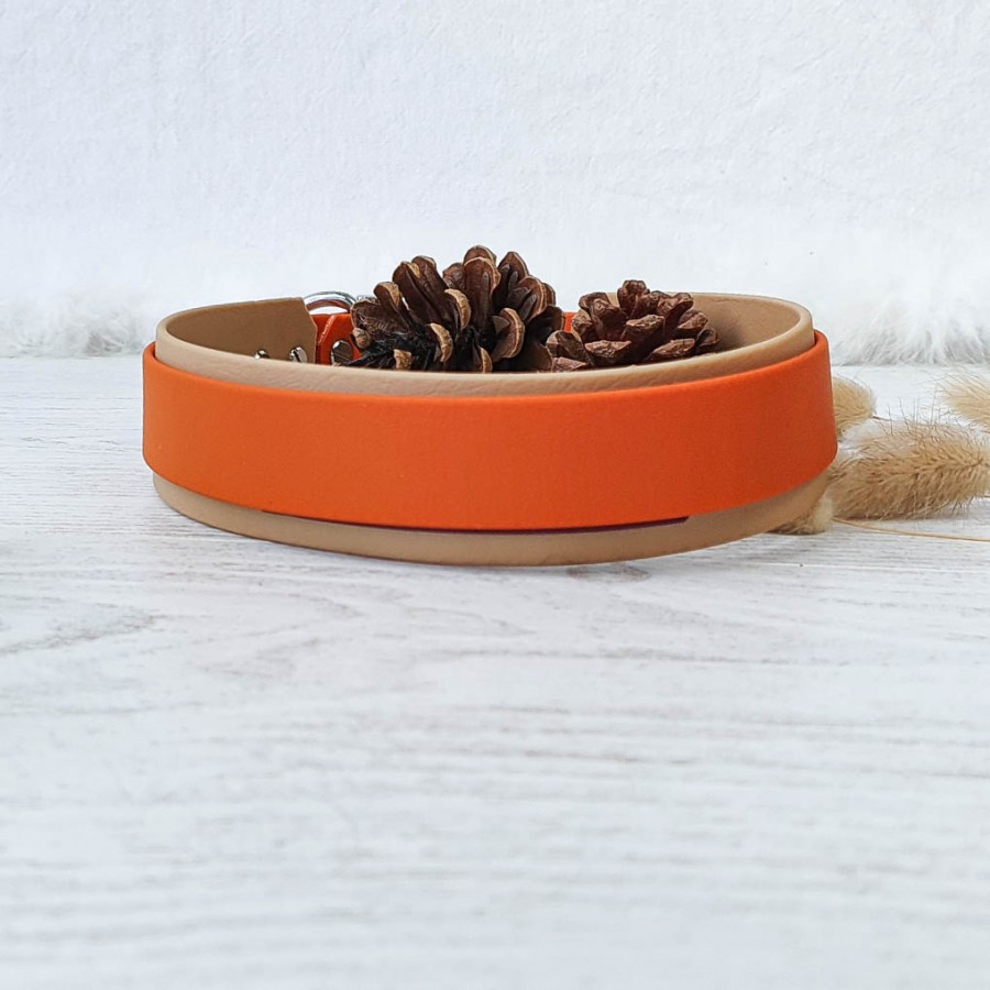 Le modèle GEMMA est un collier composé de deux biothanes de largeurs différentes. Un biothane en 38mm ajouté à une base en 25mm.