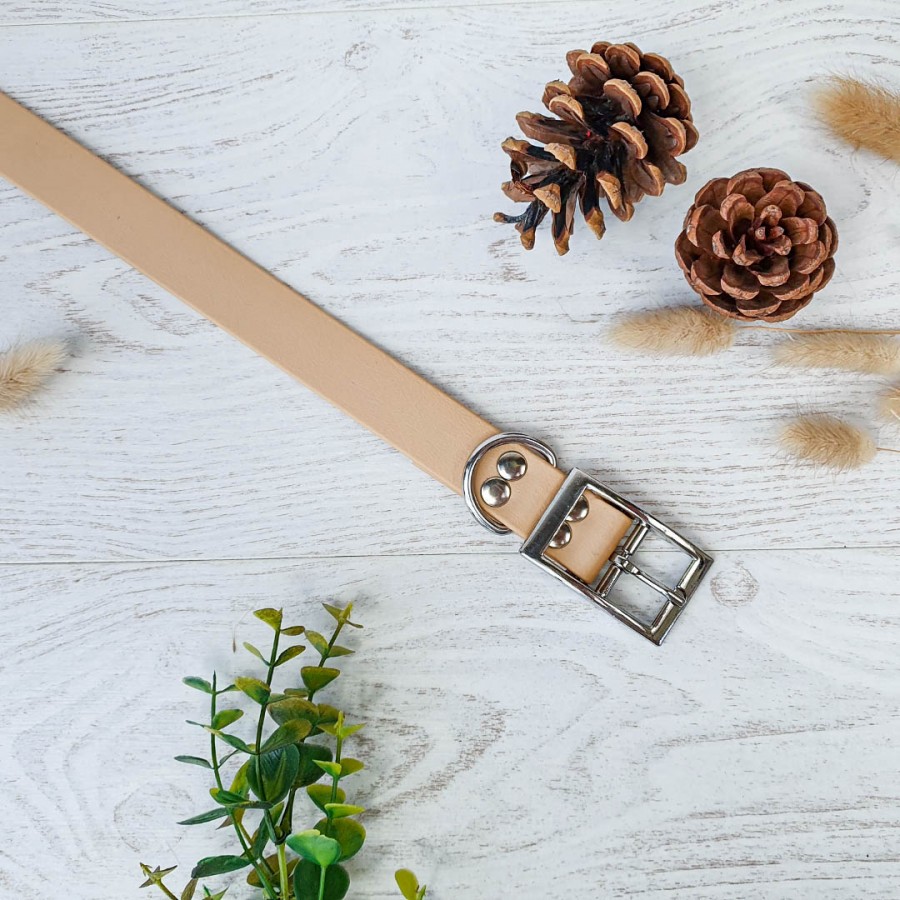 Le collier ASTON de chez Be'tween-us est un collier résistant en biothane. Il est composé d’une sangle de la marque biothane de 25mm. Une bouclerie argentée est mise pour s’accorder au reste de la création.