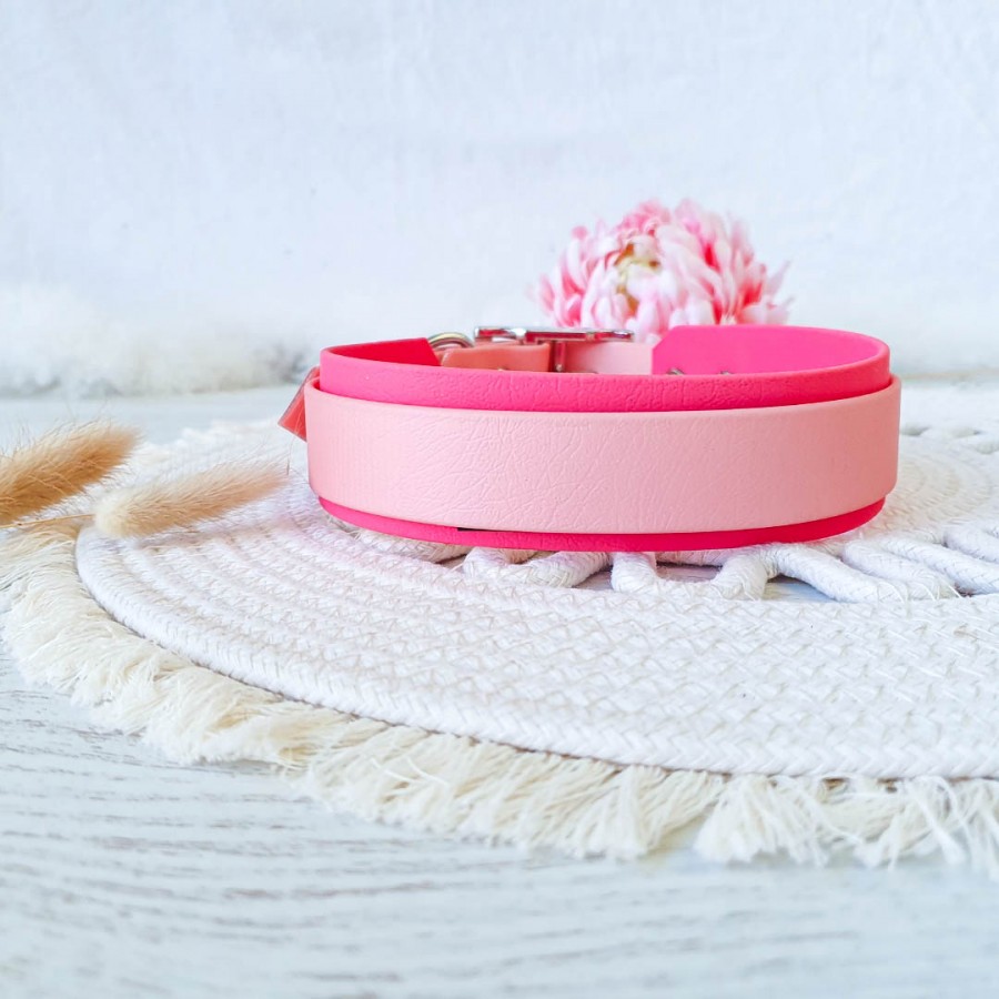 Le modèle GEMMA est un collier composé de deux biothanes de largeurs différentes. Un biothane en 38mm ajouté à une base en 25mm.