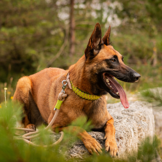 Grâce à son tressage de 3 paracorde ce collier est à la fois souple et solide. Son attache ceinture et sa sangle de 25 mm de largeur de la marque biothane offre une partie de réglable sur 6cm.