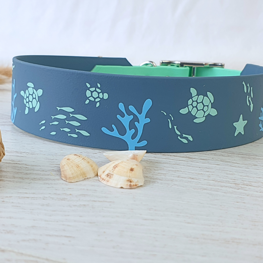 Le collier RAJAN de chez Be'tween-us est un collier résistant en biothane. Il est composé d’une sangle de la marque biothane de 38mm pour le collier et d’un biothane 25 mm pour la partie réglable et attache. Une bouclerie argentée est mise pour s’accorder au reste de la création.