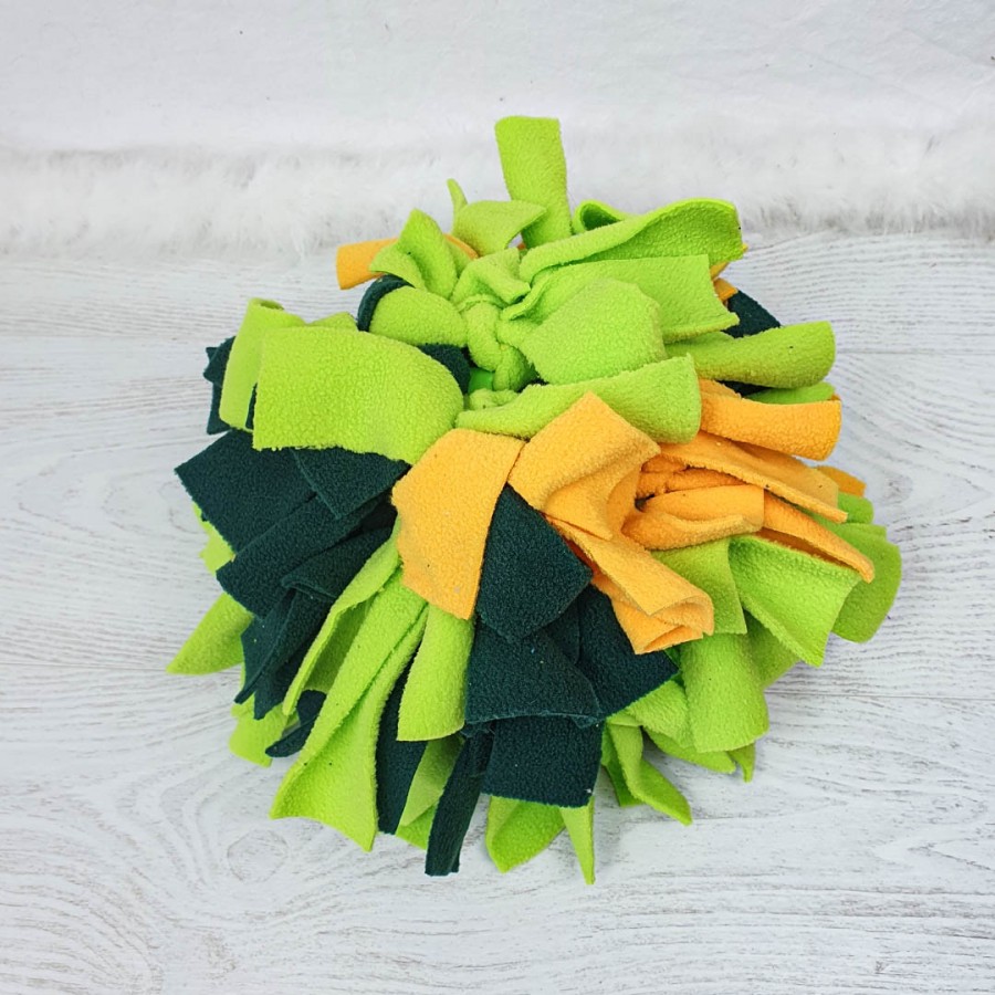 La polaire gêne la sortie des friandises ce qui va faire travailler votre chien pour les attraper. Il va alors sentir la balle, la faire rouler et réfléchir sur la façon d’accéder au contenu.