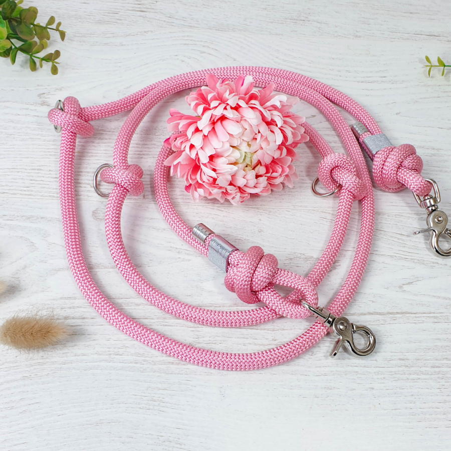 Cette laisse ronde en corde de Nylon de 10mm de diamètre peut être adaptée afin d’obtenir 3 longueurs différentes : 1m60, 2m20 ou 2m70.