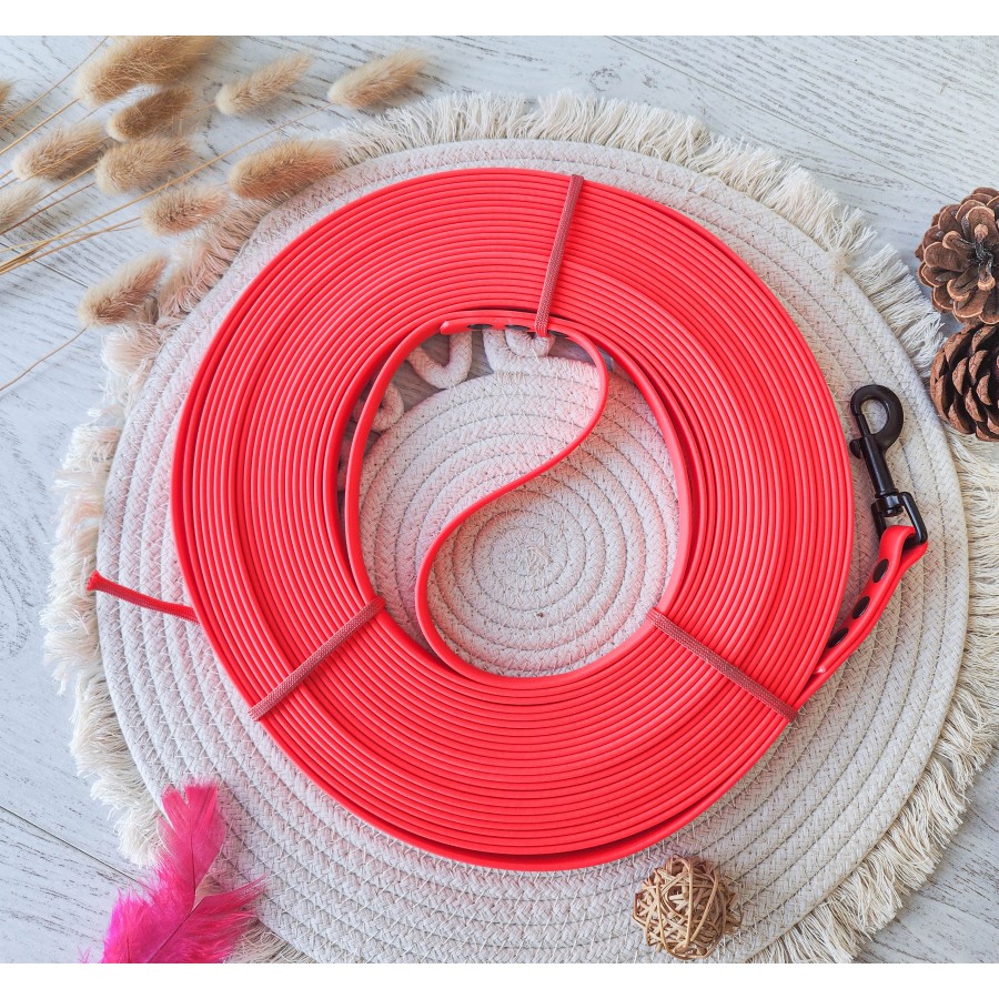 Optez pour la longe imperméable fabriquée avec une sangle PVC de haute qualité, elle est imperméable et bien plus pratique et hygiénique que les longes en cordes ou sangles.