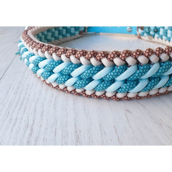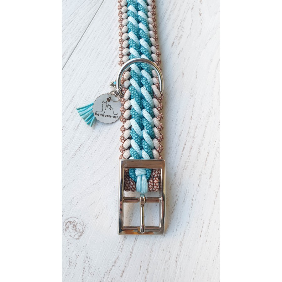 Celui-ci est composé d'une corde diamond marron et une corde beige sur les côtés et d'une corde bleu pastel et diamond bleu/teal au centre.