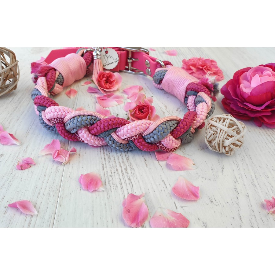Ce collier est fait de paracorde et de corde tressé ce qui en fait un collier solide.