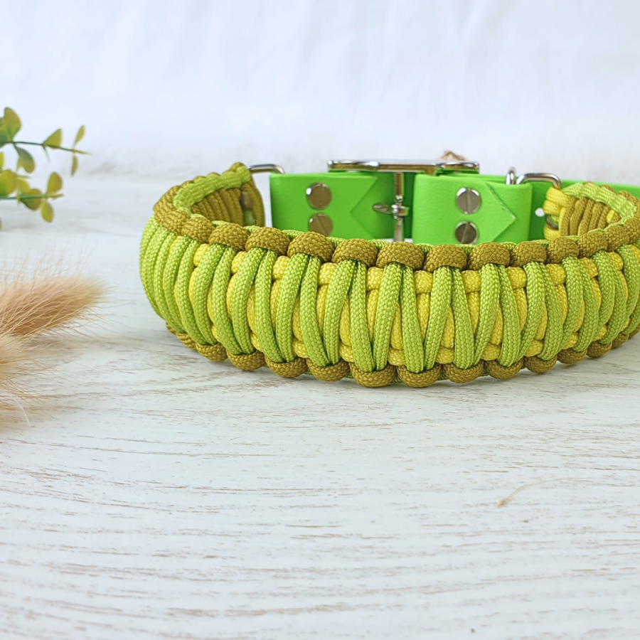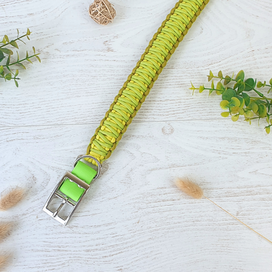 Grâce à son tressage de 3 paracorde ce collier est à la fois souple et solide. Son attache ceinture et sa sangle de 25 mm de largeur de la marque biothane offre une partie de réglable sur 6cm.