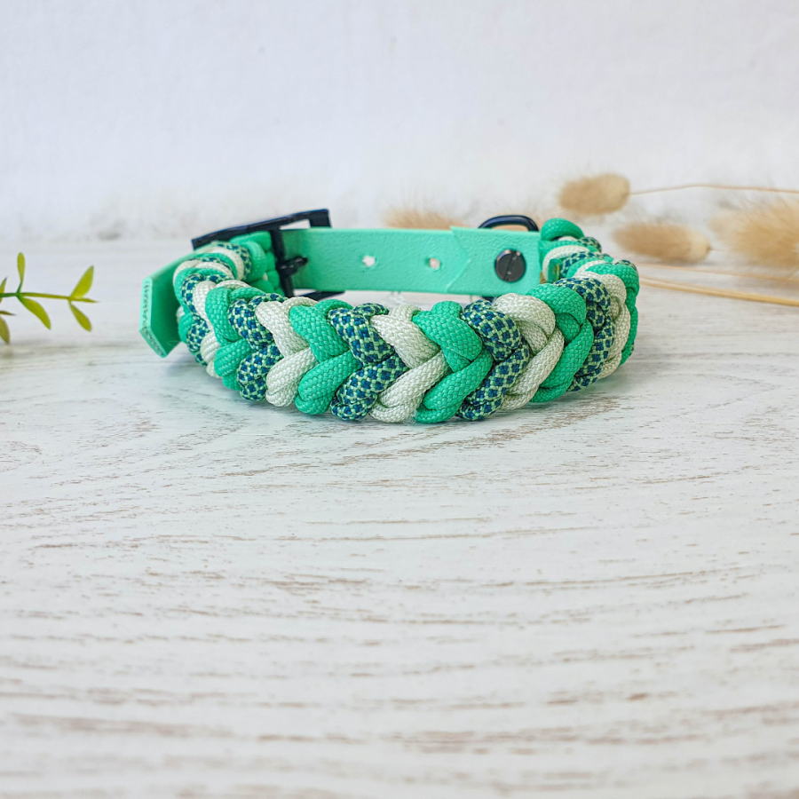 Grâce à son tressage de 3 paracorde ce collier est à la fois épais et solide. Son attache ceinture et sa sangle de 19 mm de largeur, de la marque biothane, offre une partie de réglable sur 6 à 8cm.