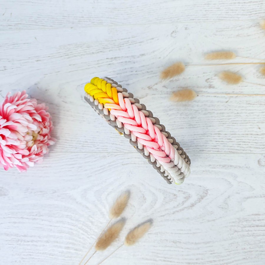 Le collier Naru est composé de quatre paracorde, un matériau sûr, réputé pour sa haute résistance au temps et à la traction. Cela garanti un collier robuste et durable.