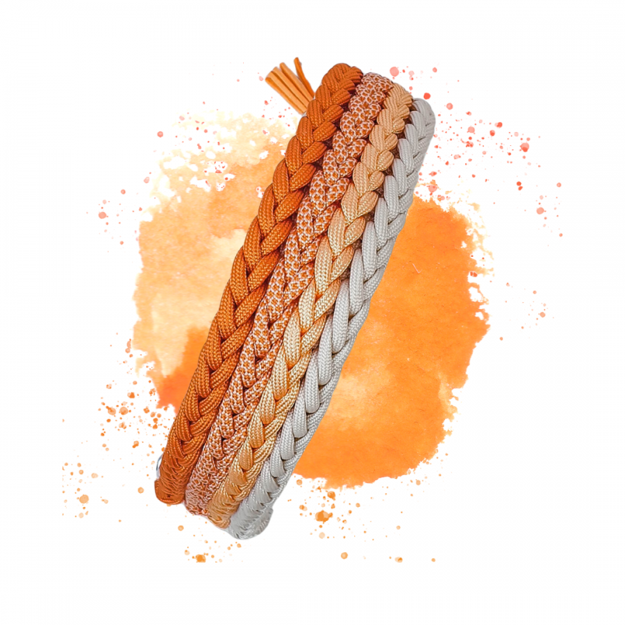 Le collier lilas est composé de 4 paracordes, un matériau sûr, réputé pour sa haute résistance au temps et à la traction. Cela garanti un collier robuste et durable.