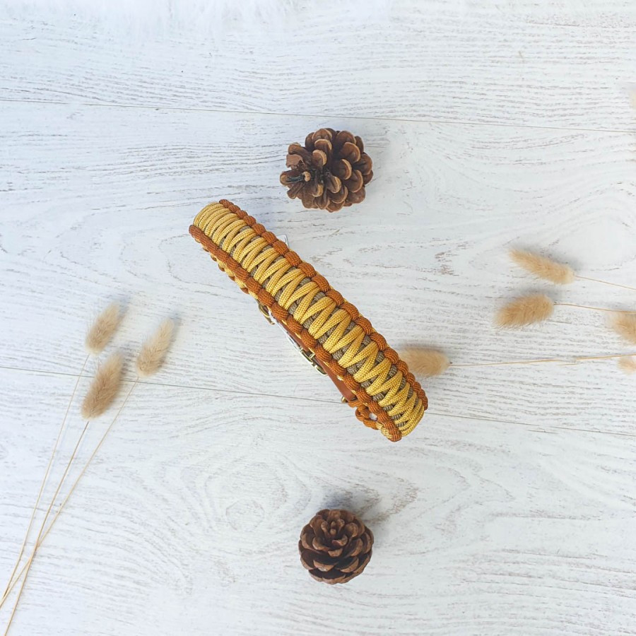 Grâce à son tressage de 3 paracorde ce collier est à la fois souple et solide. Son attache ceinture et sa sangle de 25 mm de largeur de la marque biothane offre une partie de réglable sur 6cm.